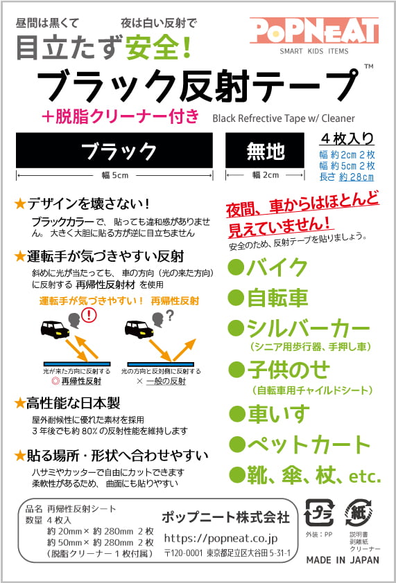 反射テープが安全なのは知っているけれど、「かわいくない」「かっこわるい」と思っていた方へも。夜間外出されるすべての方におすすめです