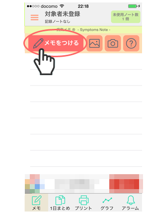 - メモ画面の「メモをつける」をタップして、メモをつけてみましょう!