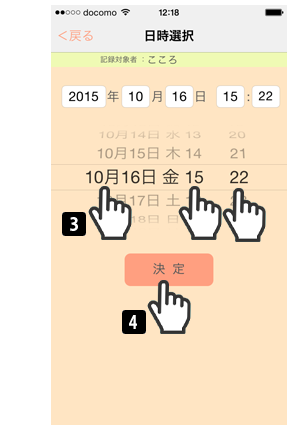 年月日・時・分をスクロールして選択します。